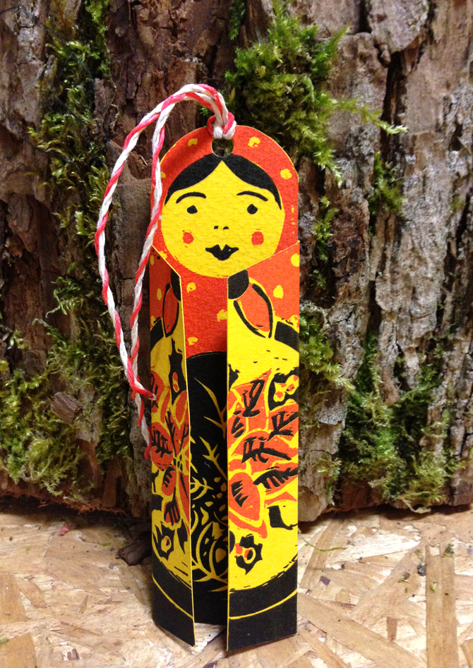 These wee handmade Matryoshka dolls unfold to reveal your wishes. They can be hung as Christmas ornaments and, once the holidays are over, the doll can be used as a bookmark.