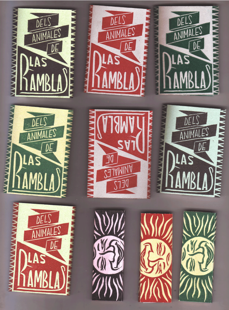 When asked to produce an item insipred by our trip for my course, I put together these packets of mock cigarette papers in the style of the vintage ones I’d seen there. Merging the two aforementioned memories together, each paper depicts an animal that was for sale on Las Ramblas, thus hinting at what appeared to me as the ‘disposable’ nature of the animals at the market.